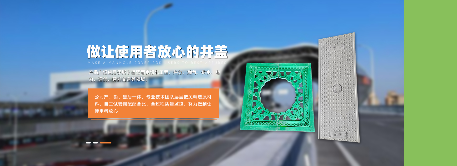 複合井蓋廠家:淄博徐州速时传感器制造有限公司主營高分子井蓋 、複合樹脂井蓋等産品,其位于華東地區工業重鎮、齊國古😜都、山東省淄博市臨淄區朱台鎮工業園,工😌廠始建于2002年,于2015年公🔞司化改制,是山東省早一批從事研究💘生産高分子新👽型材料井蓋、水篦子的生産型企業,本公司依托雄厚的研究實力和密集的人才優勢,一直緻力于研究生産新型環😸保的高分子市政設施配套産品。産品以鋼筋網爲骨架,采㊙️用BMC/SMC高強度樹脂、重鈣、玻璃纖維等......